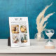 Modern Minimalist Business Countertop or Tabletop Business Product Tabletop Sign Plaque with 4 Photos. Black & White or choose your custom colours. Perfect for retail companies, small business shops, mall kiosks, trade show and event booths, hospitality, salons, spas, bakeries, cafes, restaurants, bars and more. Easy to personalise with your monogram initials, business name and information, photos, slogan or even add your logo or personal brand design.