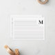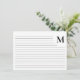 Create your own personalised stationery ruled index note cards with modern minimalist monogram in black and white colour.
