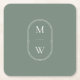 Minimalist Monogram Sage Green Wedding Square Paper Coaster