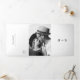Modern all in one photo wedding invitation template with rsvp card and enclosure card attached, making this invitation suite convenient and budget friendly. The invitation features a simple design with your monogram at the top and your wedding details in black over a white background. The backside has your favourite picture. The RSVP postcard has your mailing address on the back and your guests simply cut off and mail back to you. NOTE: First class postage is required for the RSVP postcard. Postcard stamps will not be enough postage due to the size. A contemporary design that is perfect for a minimalist couple.