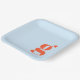 Minimalist Monogrammed Initial Retro Blue Orange Paper Plate