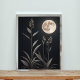 This captivating artwork captures the serene beauty of a moonlit night. The delicate silhouette of tall grasses stands in stark contrast to the bright, full moon casting its gentle light. This minimalist design evokes a sense of tranquillity and peace, making it the perfect addition to any home or office.