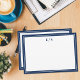 Create your own personalised stationery note cards featuring you monogram initials in minimalist navy blue typography.