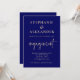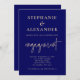 Minimalist Navy Blue Gold Script Engagement Invitation