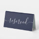 This elegant navy blue script reserved sign is perfect for your celebration. Designed by Thisisnotme©