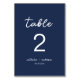 Minimalist Navy Blue Script Wedding Table Number