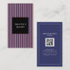 Minimalist Navy Blue Stripes Bakery Retro QR Code Business Card
