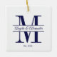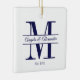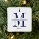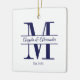 Minimalist Navy Blue Wedding Split Monogram Ceramic Ornament