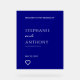 Minimalist navy blue and white with heart modern wedding acrylic sign. The design features a trendy and modern design in navy blue.