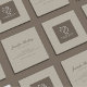 Elegant minimalist square business card designed for beauty and skincare professionals. Features a soft beige and taupe neutral palette with refined border styling for a calm, luxury brand look. Fully customizable with your logo, name, and contact details—perfect for spas, estheticians, salons, and wellness brands.