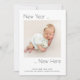Minimalist New Year New Here Photo Birth Announcement. Available digitally and printed. Your new baby has arrived for the new year! You'll be eager to announce the wonderful news to your loved ones. You can wish them a Happy New Year at the same time with this modern contemporary design New Year, New Here which is fully customisable along with your favourite photo of your new baby girl or boy. Your favourite photo is in a square format in the centre, with lots of white space surrounding it for a contemporary touch. Easily personalise the text on the front and back with your own, including all the details of your new arrival on the back, and simply replace the sample photo in the template placeholder with your own. You can also change the background and text colours on either side if you wish via customise further.