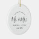This minimalist newlywed first Christmas wedding photo ceramic ornament is the perfect simple Christmas tree decoration. The design features classic black and white typography paired with a rustic yet elegant script font with hand lettered style. This keepsake ornament reads "our first Christmas as mr and mrs". Personalize the front with your names and the year. Personalize the back with your favorite wedding photo.