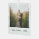 Minimalist style Christmas Ornament featuring a simple design with your favourite wedding photo along with your names and the year in a handwriting script. This modern and elegant holiday ornament makes a great gift for newlyweds or a recently engaged couple.