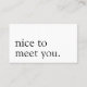 Minimalist Nice to Meet You Greeting Monochrome Business Card