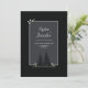 Welcome your guests with the quiet elegance of this minimalist Nordic-inspired design. A crisp white rectangular frame sits against a deep charcoal-black backdrop, creating a sophisticated window for your celebration details. Two tall black pine tree silhouettes anchor the base, rising from a soft patch of green grass dotted with cheerful white daisies and tiny red berries. A matching cluster of delicate daisies graces the top corner, adding a touch of organic charm to the clean, modern layout. This composition perfectly blends high-contrast monochrome with the tranquil beauty of a woodland meadow. This wedding invitation is ideal for modern minimalist ceremonies, serene woodland weddings, or a sophisticated black-tie event featuring an organic nature aesthetic.
