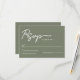 This minimalist olive green wedding RSVP card features a modern elegant layout with clean script typography and a timeless, natural color palette. Perfect for rustic, greenery, or classic wedding themes. Fully customizable, making it easy for guests to confirm attendance. Ideal for couples looking for simple, stylish, and coordinated stationery to match their wedding invitation suite.