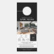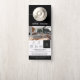 Minimalist Open House marketing door hanger / invitation with space for 4 photos, your logo, contact details and property information. This fully customisable black and white house for sale marketing door sign features a modern design that is sure to stand out. Perfect to advertise a property listing or open house event to prospect buyers in the local area.
