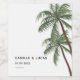 Tropical wedding wine label featuring palm tree illustration. The simple tropical wedding invite reverses to display a solid green background. Designed to coordinate with our Minimal Palm Tree wedding collection.