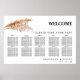 Simple and modern wedding seating chart featuring a watercolor pampas grass illustration.