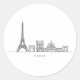Minimalist Paris Skyline Line Art Classic Round Sticker
