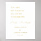 This sign is absolutely stunning. We used one of our engagement photos for the background and put a nice message to our guests on it, as well. Having the option to customize things how WE want is the great thing about Zazzle. The order arrived on time and in tact, made from quality materials. The foil will match perfectly with the gold theme of our wedding.