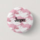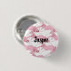 Minimalist pattern in purple, pink and white shades, design with leaves, doodle dots and waves. Personalised Button.