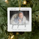 Help them celebrate the arrival of their first grandchild with this modern minimalist photo keepsake ornament. The charcoal gray text reads "Our first Christmas as grandparents," with the word "grandparents" in trendy handwriting script. Easily replace the sample image with your favorite photo of the new baby, and add his name and the year below. A white gradient screen helps make the text overlay pop.