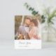 Modern budget wedding thank you card featuring a simple and minimal layout with serif and script fonts along with your favourite photo.