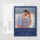 Minimalist Photo QR Code Navy Blue Save the Date Postcard