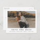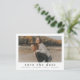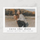 A Modern Minimal Photo Save the Date featuring simple typography and horizontal photo on the front. The back is a mailable postcard with additional text and a personal message from the couple. Click the edit button to customise this design with your photos and details.