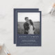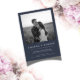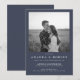 This elegant minimalist wedding invitation features a full photo layout with clean serif typography and a classic navy background. Perfect for couples who want a timeless and personal touch to their special day.