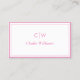 Make a chic statement with our Minimalist Pink Border Business Card. Featuring two minimalist-style borders, the front showcases a subtle yet striking pink border, while the back boasts a full pink background. Personalise it with your name, address, contact number, and initials to create a professional and stylish impression. Whether you're networking at events or exchanging contacts, this business card is a sleek accessory that speaks volumes about your professionalism. Elevate your brand with the understated elegance of our Minimalist Pink Border Business Card.