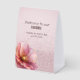A gorgeous minimalist pink and gold color Poppy adorns this pink and burgundy wedding table top sign welcoming guests to your reception.