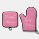 Minimalist Pink and White Custom Name Kitchen Oven Mitt & Pot Holder Set