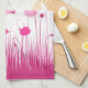 Minimalist Pink and White Poppies Meadow Floral Tea Towel