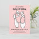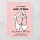 This classically simple, yet elegant design features pointed toe ballet slippers in white with a soft pink background. A pretty invitation for your favourite ballerina. All text can be personalised to your liking.