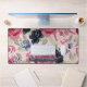Minimalist Pink and Grey Floral Pattern Desk Mat and Custom Name
