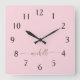 Minimalist Pink Gold Monogram Signature Script Square Wall Clock