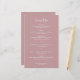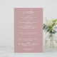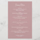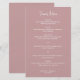 Modern dusty rose pink wedding menu featuring a simple design with the header in an elegant script typography and your menu in a minimalist sans serif font. This chic wedding menu works well with any style of wedding.