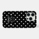 A black and white phone case featuring classic polka dots and a cute cat design. Simple, stylish, and perfect for anyone who loves cats and clean patterns.