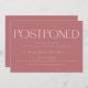 Postponing a big event like your wedding can be stressful, but you can still look stylish with this modern and minimalistic change of plans template card. It says "postponed" in stylish and noticeable font at the top followed by your event information and regrets. The background is pink.