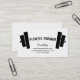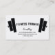 Modern personal trainer business cards featuring a fresh white background that can be changed to any colour, a curved barbell gym weight and your details.