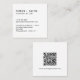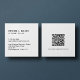 Minimalist and elegant professional square business card featuring your name, title and contact information (e.g., email, telephone numbers, company name and mailing address) in clean modern lettering. On the back, input a URL address to create a scannable QR code linked to your website, social media profile, or other platform that showcases your work, and add additional text or leave blank.