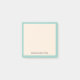 These notes can be used for anything from a thank you to a to-do list. They can be used in the office for notes for your work colleagues or as reminders for you or at home to remind someone to pick up some milk. These simple, minimalist basic notes can be personalised to include a name or any text of your choice. If you don't want any text and would prefer just a blank note, then you can simply delete the text. This post it note is in antique white and turquoise green.