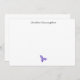 Minimalist white flat note card with your name and purple leaf spray.
