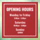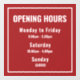 Give your storefront a bold and polished look with this Minimalist Red Opening Hours Sign. Featuring a striking deep-red background, clean white text, and a modern double-line border, this editable template is perfect for businesses that want a professional and attention-grabbing display.