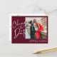 Modern casual script photo wedding change the date with a hand written style typography, all colours are editable, add your couple photo with simple and minimalist red burgundy to announce the postponement of your wedding and new plans