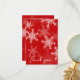 A charming and modern thank you card for a Christmas themed baby shower, featuring a soft, pastel red background adorned with delicate white snowflakes. The intricate snowflakes, designed with fine, lace-like details, cover the card’s surface, adding a touch of elegance and whimsy. The words "Thank You" are written in a graceful, flowing script at the top of the card, offering a personalised feel. The family name is elegantly incorporated into the design, complementing the snowflake pattern. This versatile design is not only perfect for baby showers but also suitable for other occasions such as birthdays, weddings, or holiday greetings. The overall style is warm and inviting, with a subtle holiday-inspired touch, making it ideal for expressing gratitude to loved ones on various special occasions.
