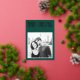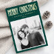 Winter season foil photo greeting card with single photo template, custom name flanked by stars and retro text "Merry Christmas” in real foil. Dark green or custom color background.