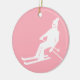 Minimalist Retro Skier Winter Pink White Ceramic Tree Decoration
